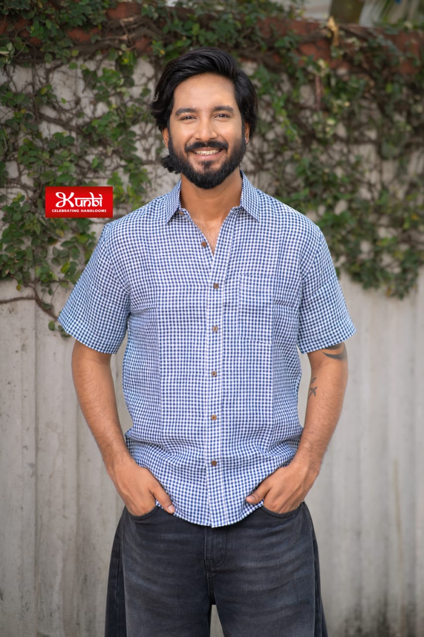 White and Blue Checks Linen Shirt