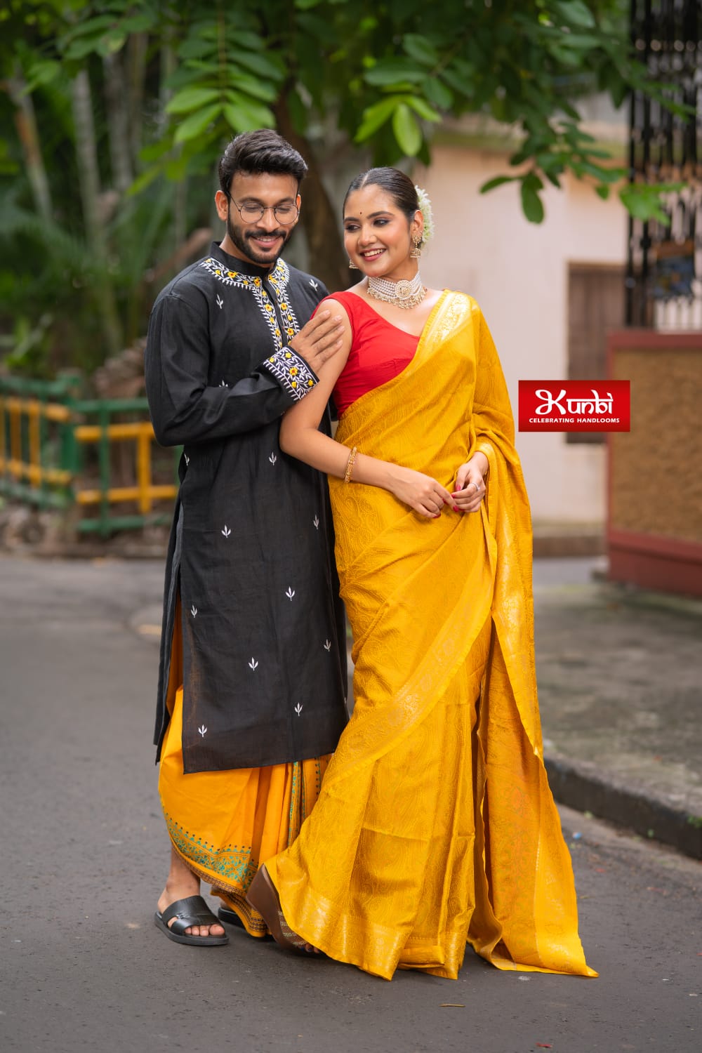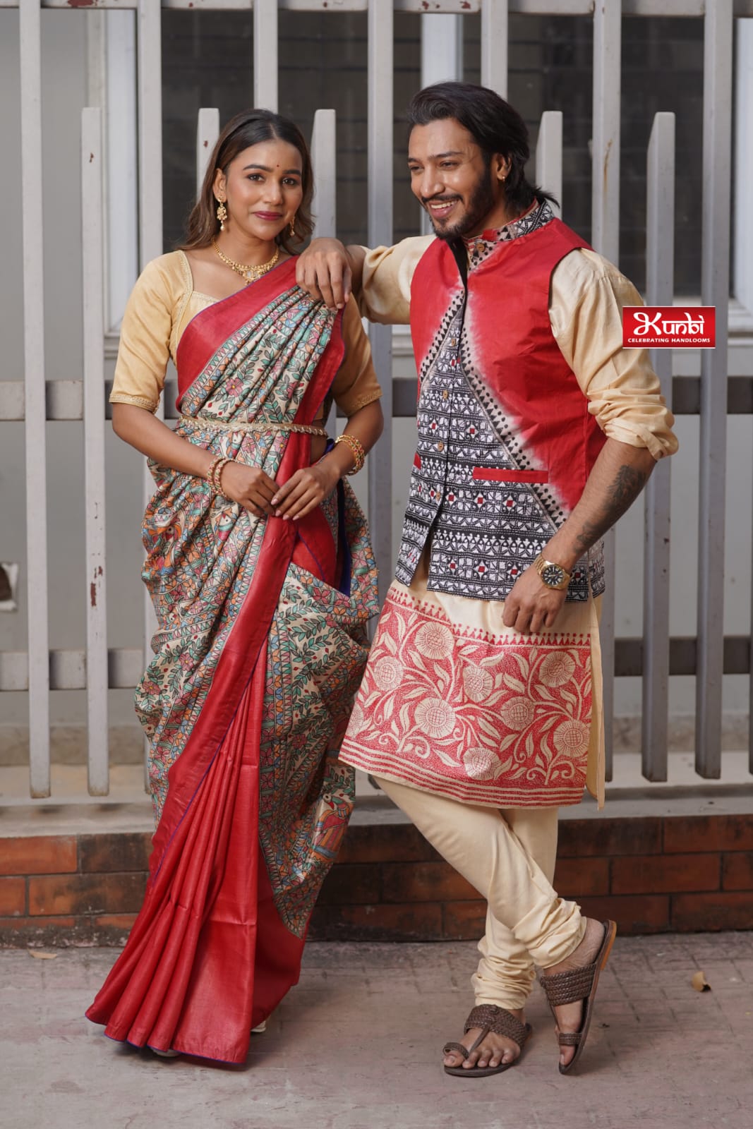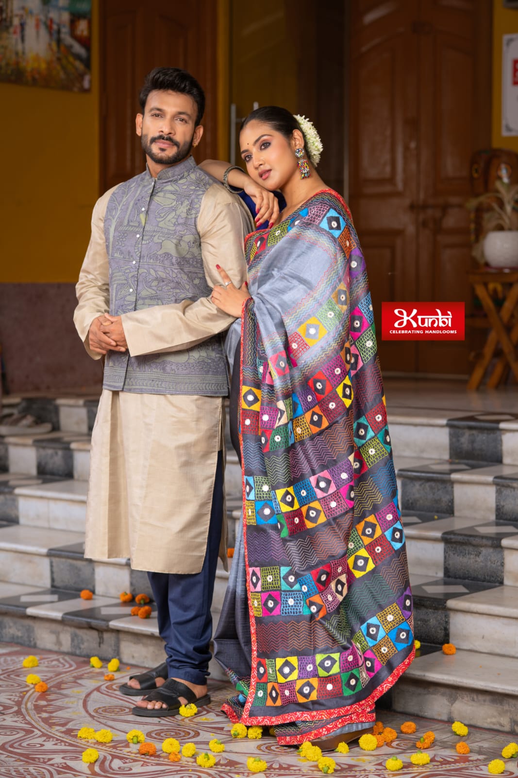 Tussar Kantha Stitch Saree with Kantha Stitch kurta and Dhonekhali dhoti kurta and