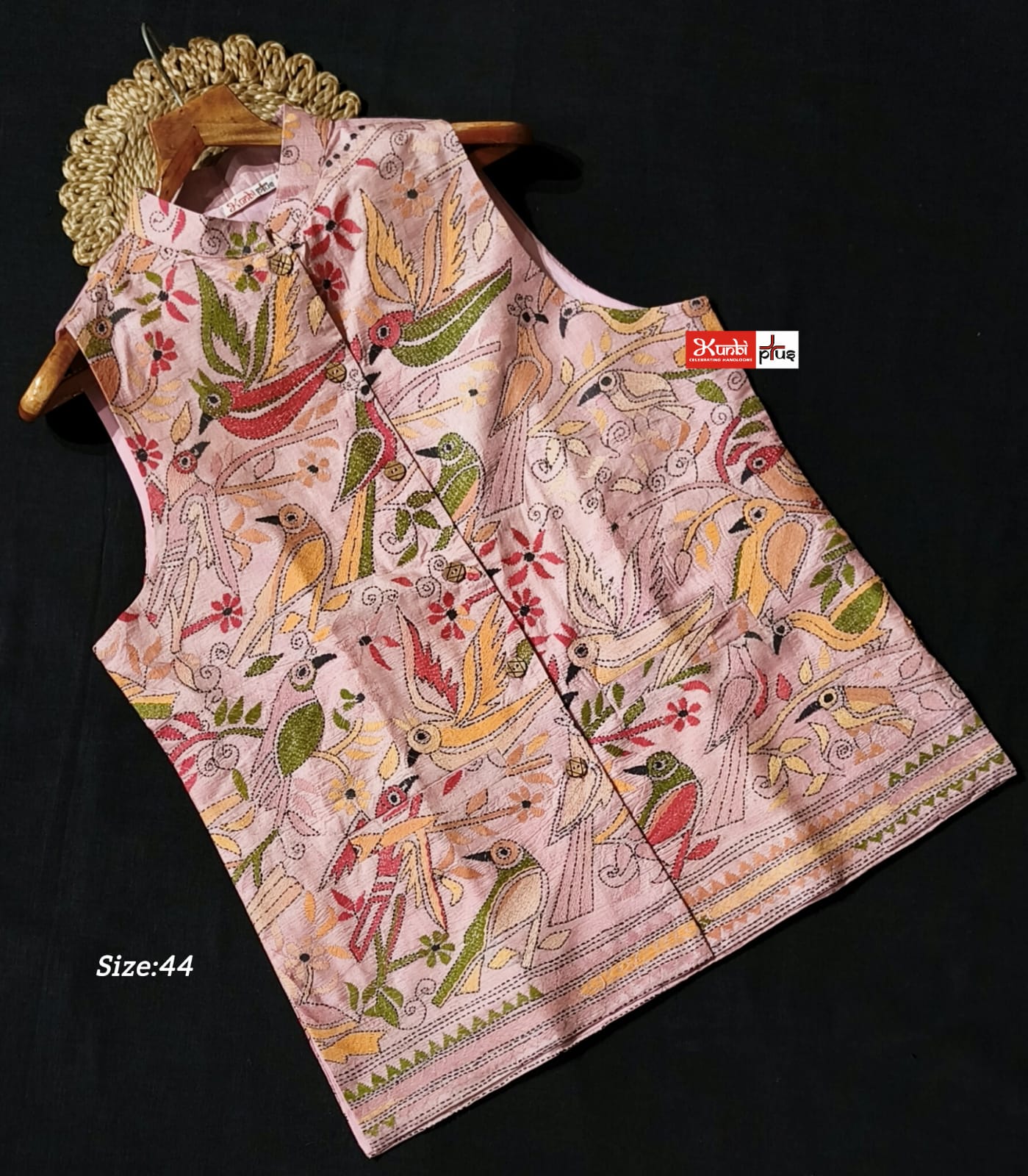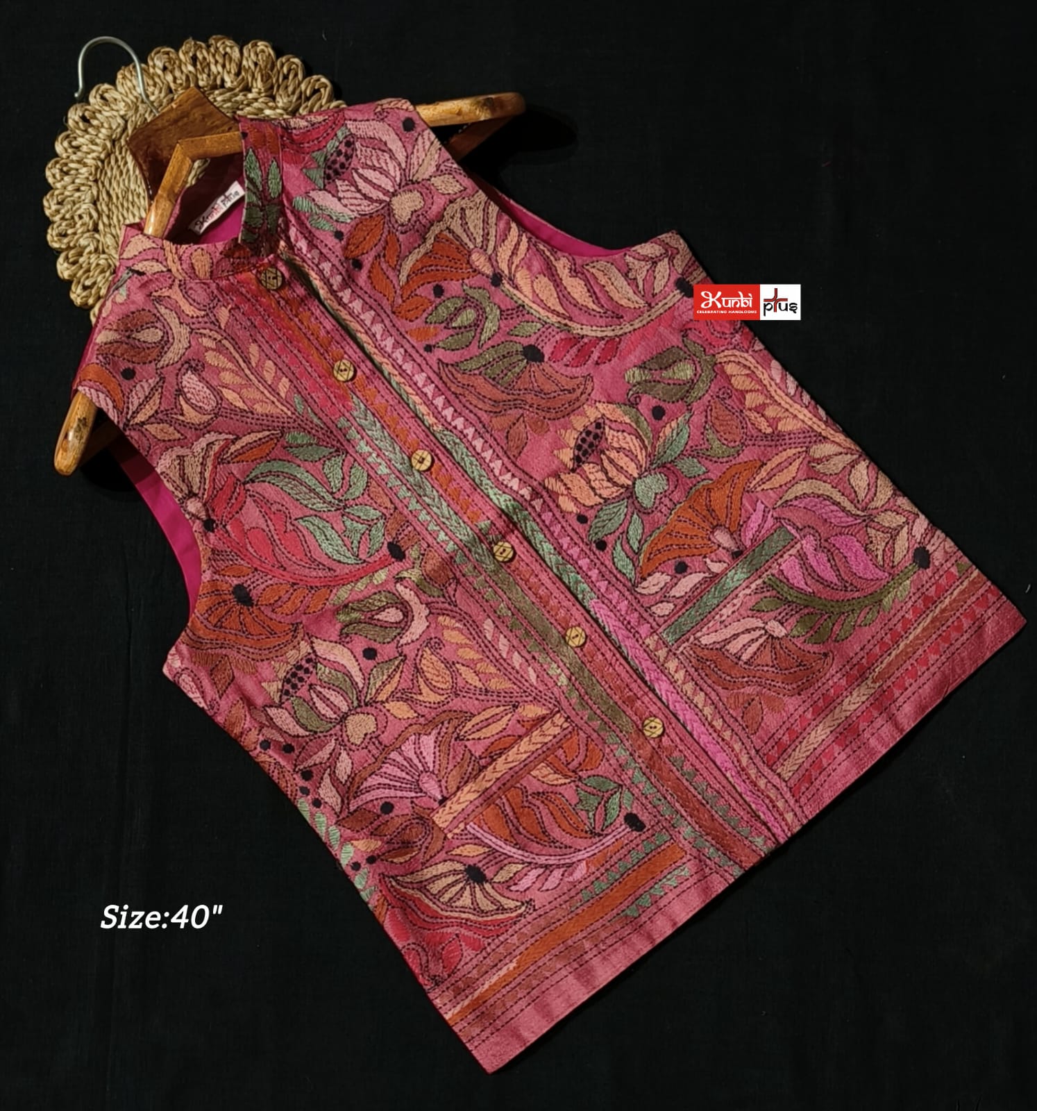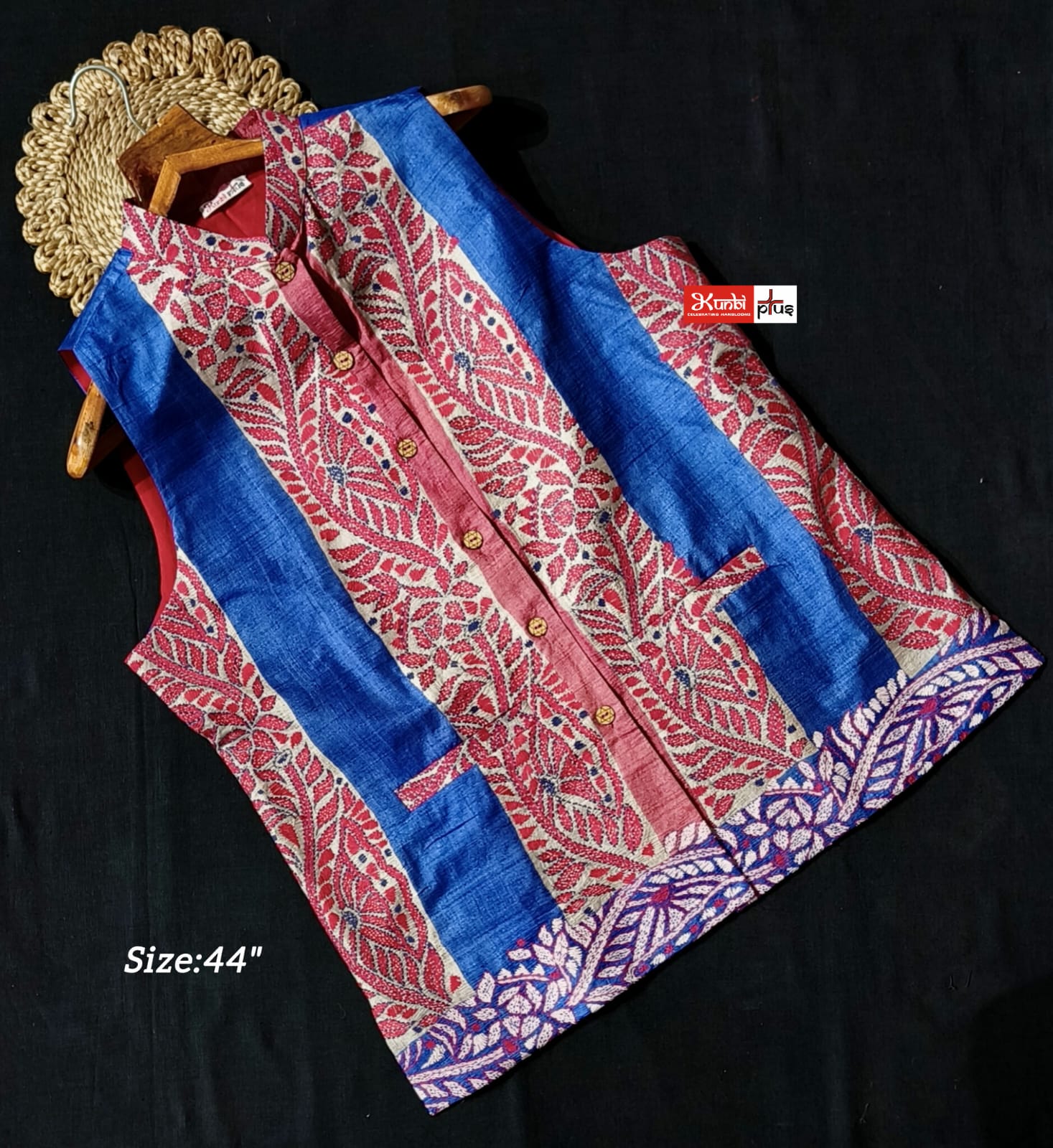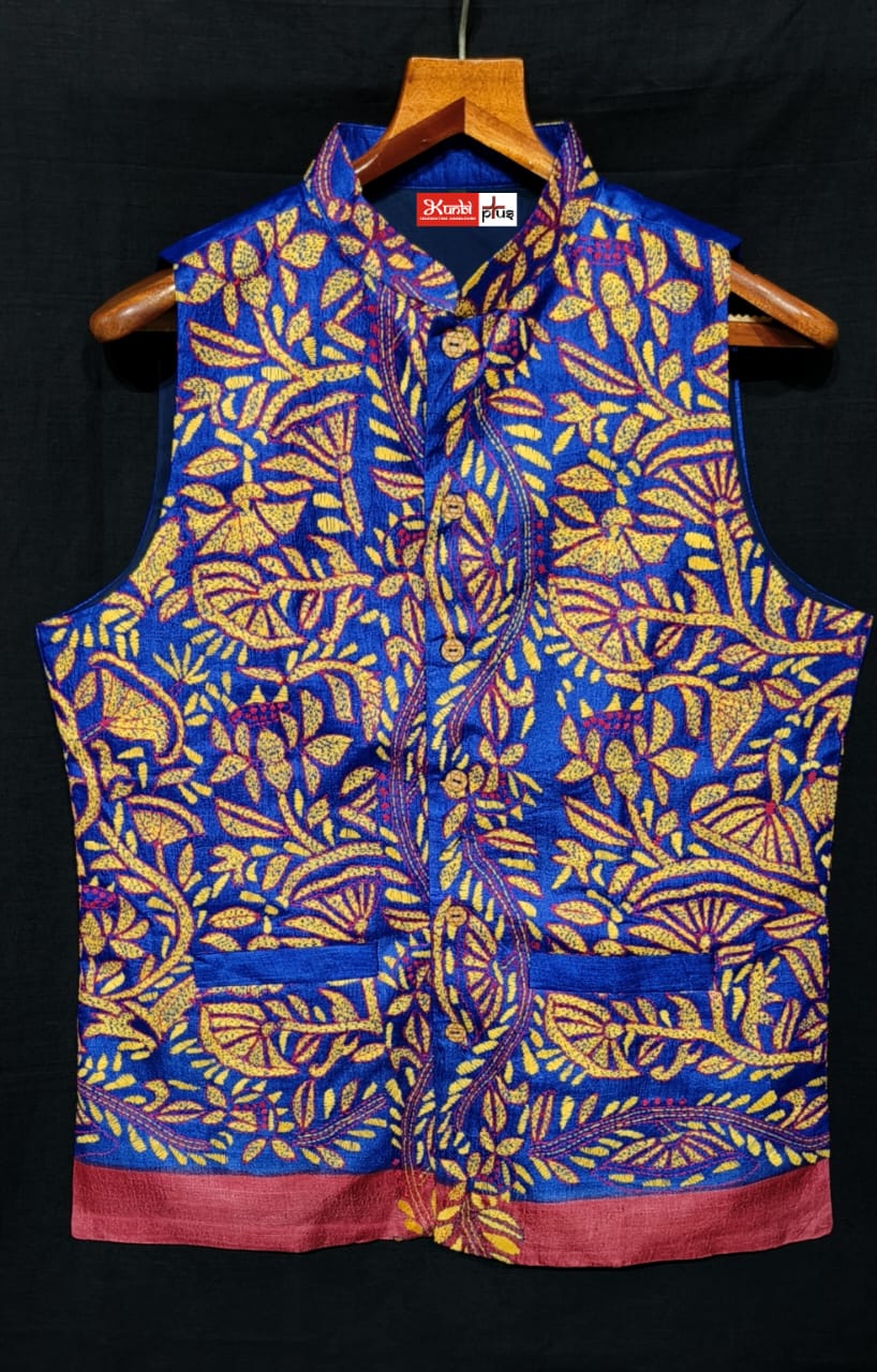 Premium Quality Tussar jacket With Intricate Kantha Stitch work