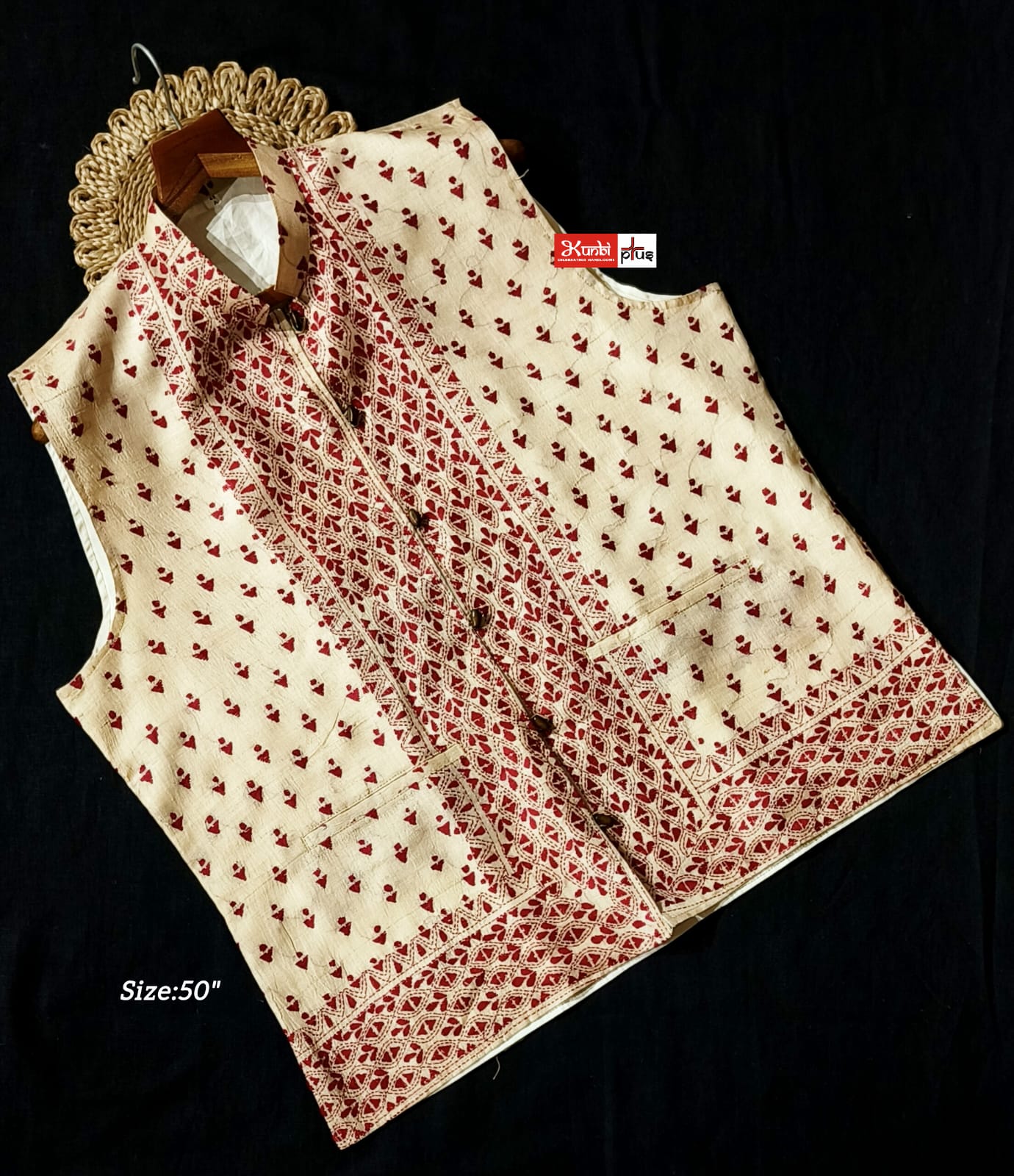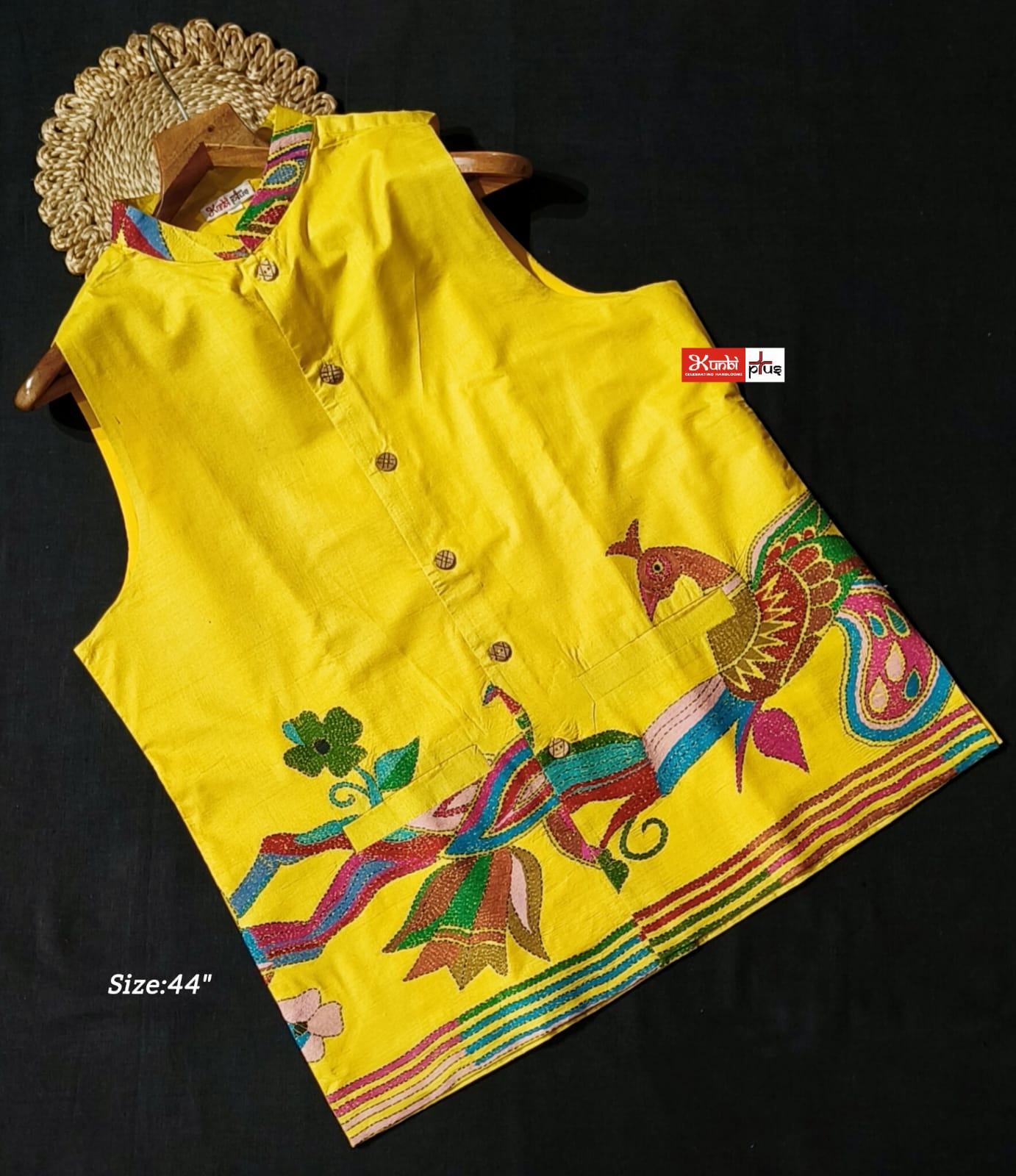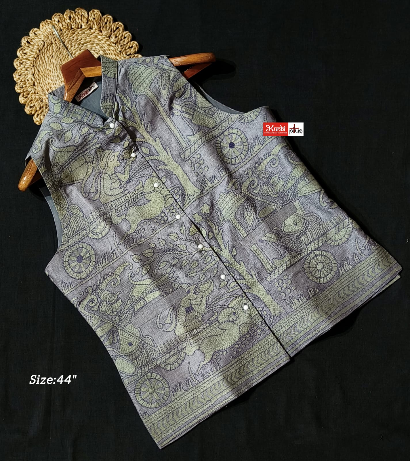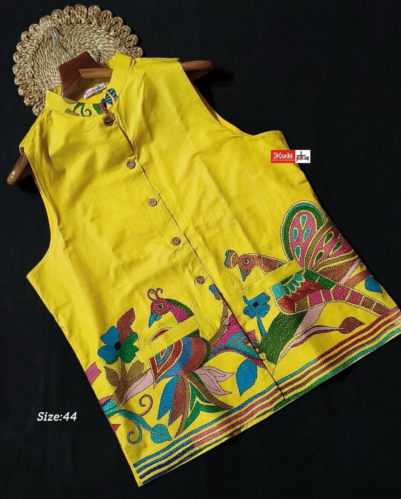 Premium Quality Tussar jacket With Intricate Kantha Stitch work